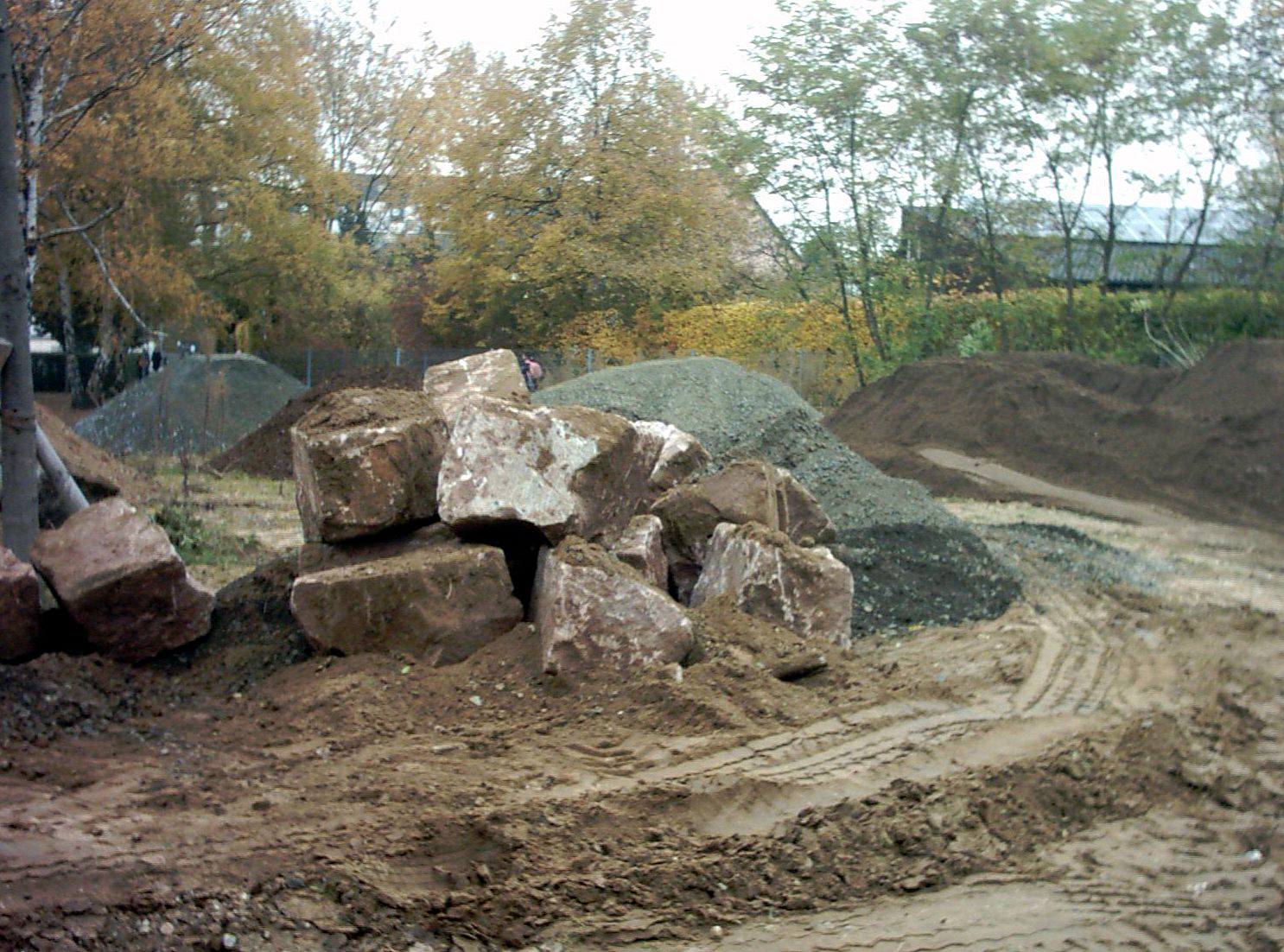 19m² Betonpflaster, 8,5m³ Fertigbeton, 15t Felsensand, 53t Natursteine, 160t Schotter, 90m³ Holzschnitzel, 6m³ Rinderhächsel, 80m³ Mutterboden, 20 Sack Trasszement, 2,5t Sand, 45 Sack Fertigbeton, 1,5t Findlinge